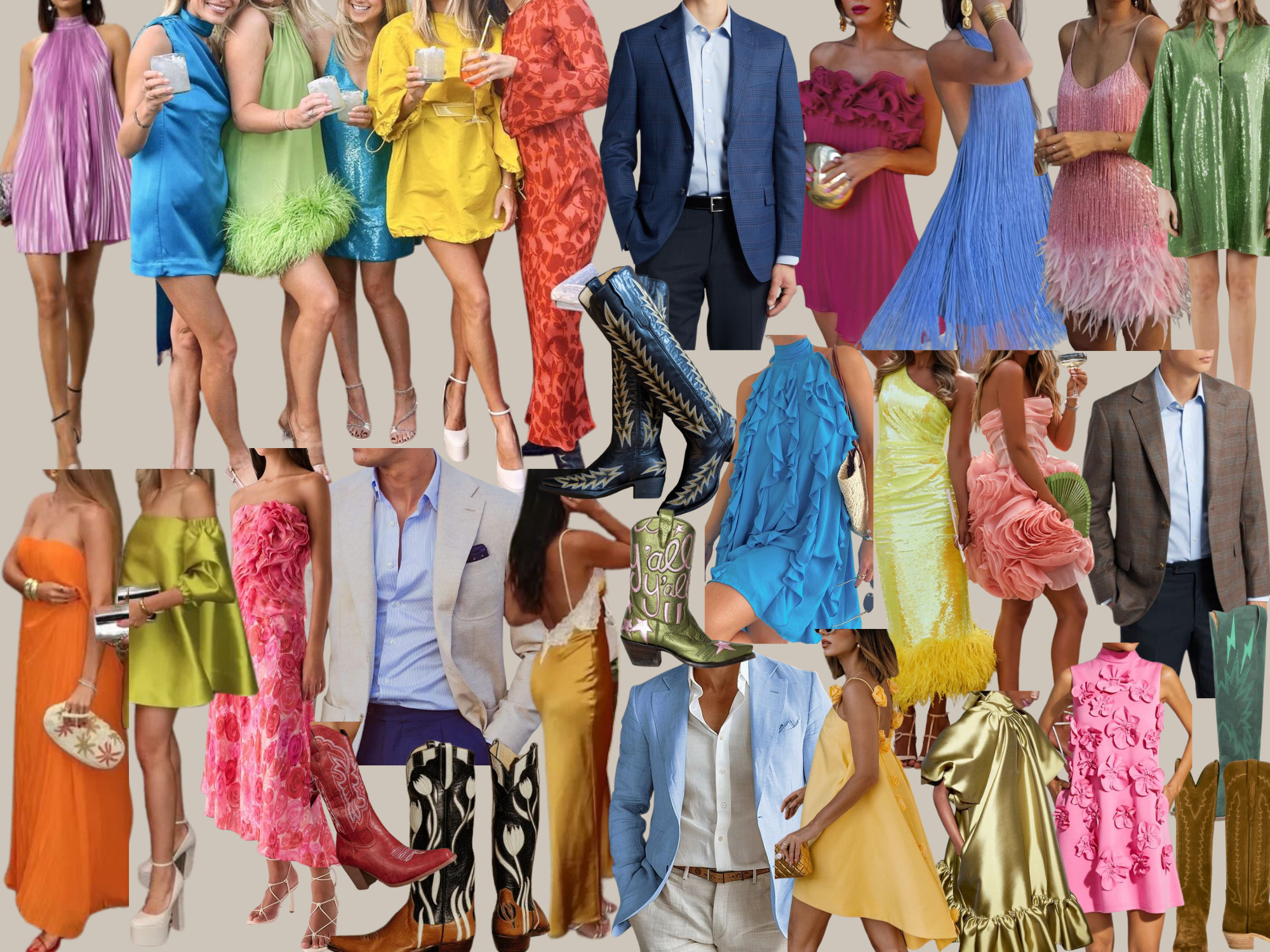 Ladies, if you want to add a pair of cowboy boots with your cocktail dresses - go for it! Fun heels or sandals will work perfectly as well!